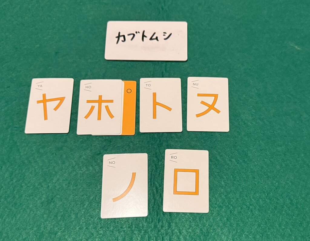 「ワ」を引いたとすると、自分のコトバ(上段)のカードと入れ替えるか、「余り」エリア(下段)に置くかを選びます。